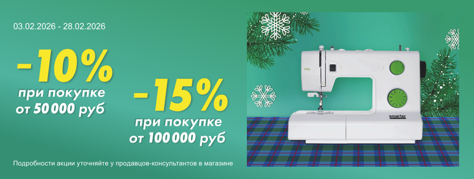 При покупке швейной машинки или оверлока в Волгограде действуют существенные скидки на аксессуары и товары для рукоделия. Всегда в продаже сотни товаров со специальной скидкой, которая действует при покупке на сайте.