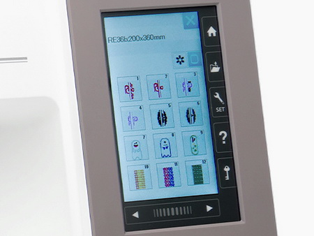 Управление машиной осуществляется на цветном сенсорном дисплее, на котором вы можете видеть образцы дизайнов вышивки, различные параметры и рекомендации, а также, при необходимости, изменять настройки.